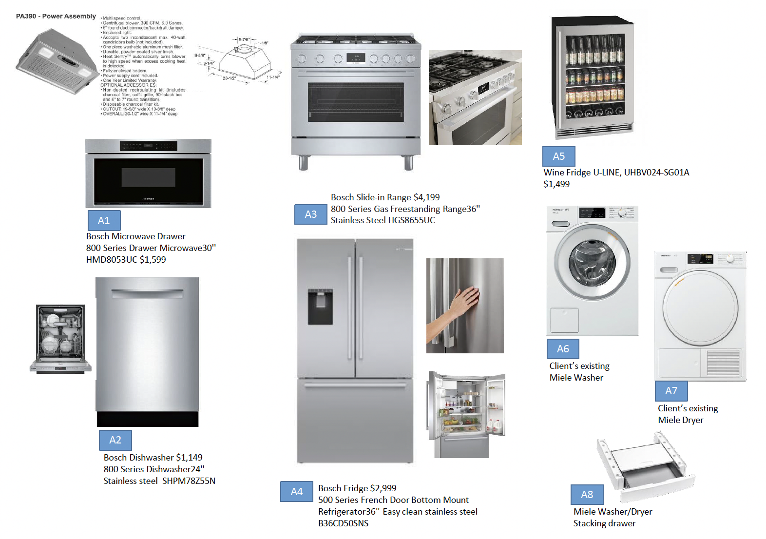 Sample applicance build and pricing sheet by Level 1 Interior Designer.